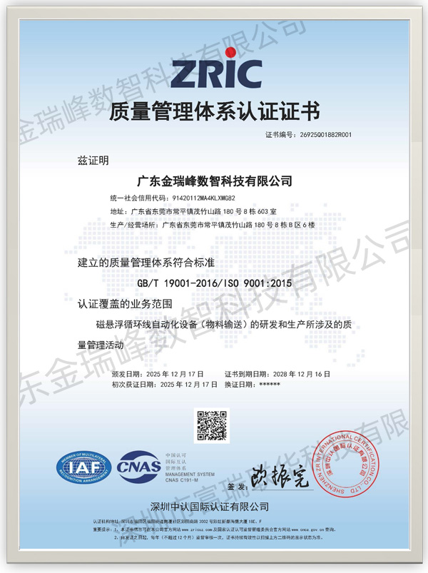 质量管理体系认证证书 ISO9001